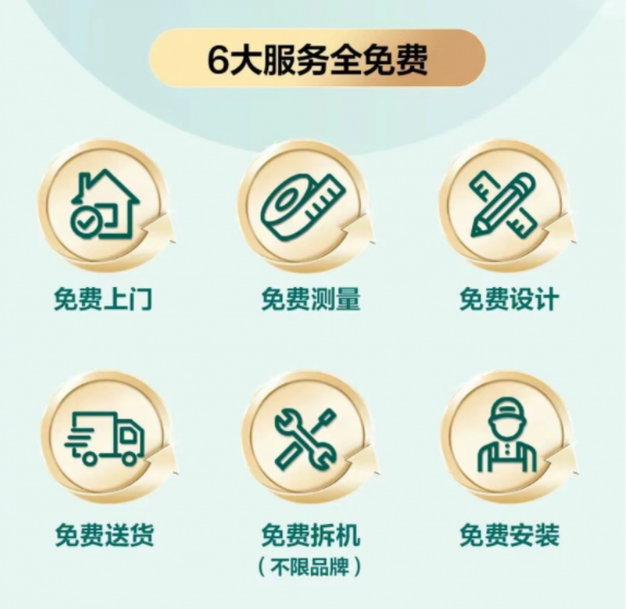 华帝精准把握了这一行业变局,率先推动竞争维度升级。其推出的"服务到家"活动,以六大免费服务体系为核心,直击行业痛点。特别是“不限品牌免费拆机”和“免费上门设计”两项服务,突破了行业传统服务边界,不仅降低了消费者的决策门槛,更重要的是解决了厨电换新过程中的实际问题。