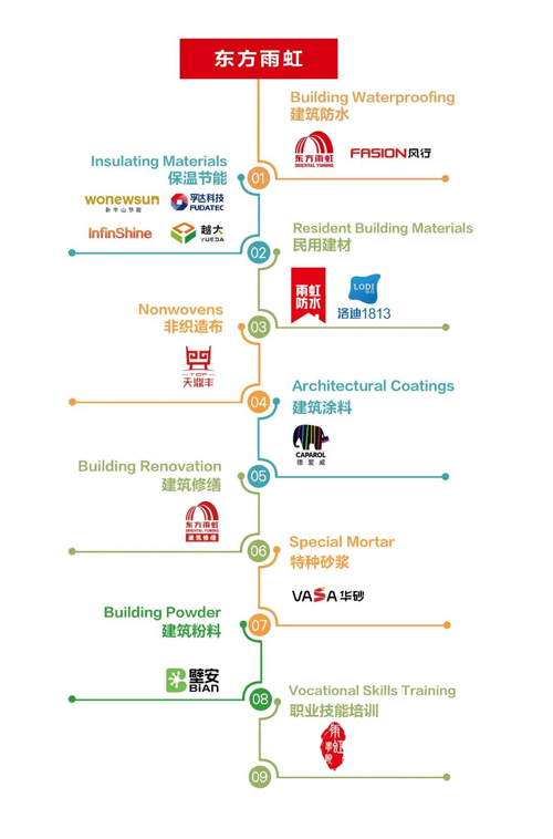 近年来,房地产行业日趋成熟,东方雨虹也在积极布局、进入更广阔的市场,业务领域从建筑防水至民用建材、节能保温、特种砂浆、建筑涂料、非织造布、建筑修缮、建筑粉料等领域,形成多业务板块合力发展的建筑建材系统服务能力,产品与服务远销德国、巴西、俄罗斯、日本等100多个国家和地区。