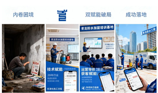 加盟商能共享青龙的品牌资源,比如使用品牌宣传物料、借助品牌荣誉背书谈业务,这能大大降低获客难度。有个刚创业的加盟商,之前没做过防水生意,凭借青龙的品牌知名度,开业第一个月就接到了 10 多个客户咨询,顺利签下 3 个订单。