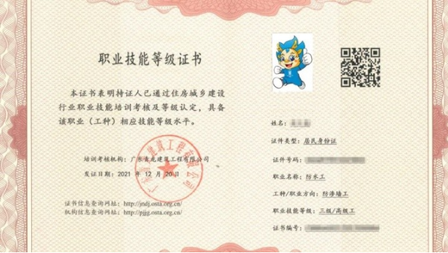 判断防水补漏培训机构是否靠谱,资质是硬门槛。青龙防水是国家高新技术企业、专精特新企业,拥有中山市人社部门认定的职业技能等级认定自评机构资质,培训合格的学员可直接考取防水工、装饰装修工等职业技能证书,证书全国通用,这既是技术实力的证明,也能给客户带来更强的信任感。