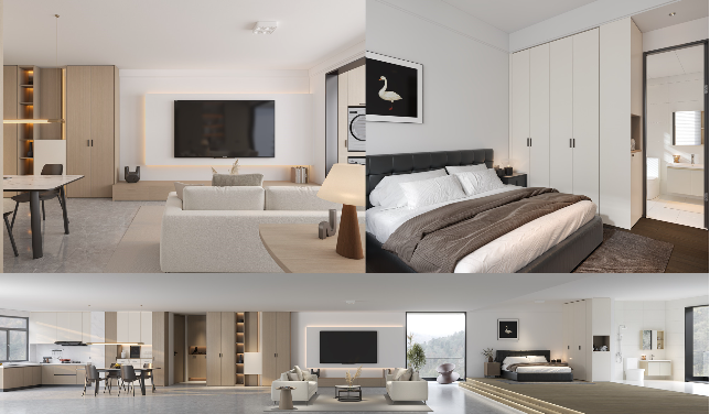 为给消费者提供更优质便捷的一站式的大家居全品类解决方案,好莱客艺术整装998元/㎡好家装套餐实行设计先行选材配合的模式,从设计端开始采用硬装定制一体化设计,保证设计效果完美落地。