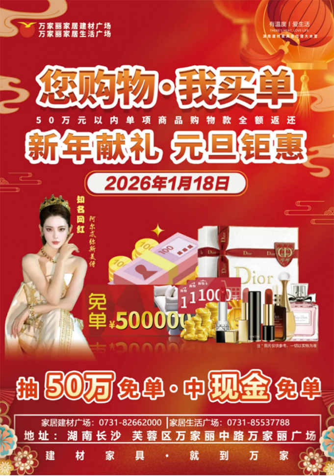 岁律更新,暖意渐浓,正是焕新居家环境、勾勒理想生活的黄金时节。作为三湘大地家装行业的领航者,万家丽实业集团携“您购物·我买单——新年献礼,元旦钜惠”活动热力来袭,以全球最大地铁建材家居装饰城的雄厚实力,湖南建材家具总代理大本营的独家优势,为全城消费者奉上一场品质与实惠兼具的家装盛宴。更有百万粉丝网红阿尔忒弥斯美伢倾情助阵,与您共鉴底价魅力,解锁理想居家生活的无限可能。