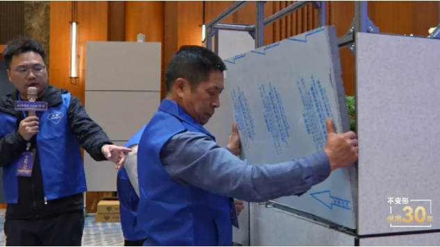 积木式装配:会场实地演示了“所见即所得”的装配过程。从构件对位到立面成型,施工高效、规范、标准,极大地降低了对人工技术的依赖。