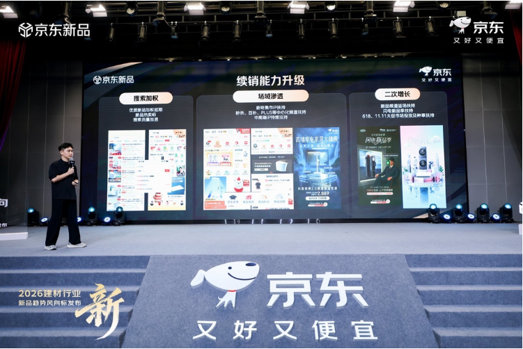 为持续助力品牌实现新品全生命周期长效增长,2026年京东建材将从依托京东新品&闪电新品的打爆方法论,从五大维度进行增长能力的全域升级。在C2M反向定制方面,京东全流程接入AI智能体,通过JoyInside为品牌提供从趋势洞察、产品定义到研发落地的全链路赋能,进一步提升新品研发的精准性与确定性。在新品运营层面,京东聚焦品牌重要营销节点,通过京东MALL实景首发、线下品牌活动联动、专属开新直播等形式打造线上线下一体化体验场景,并借助AI工具实现用户运营、权益规划与客户服务的精细化管理,提升转化效率。同时,京东对闪电新品发布会机制优化升级,围绕“悬念感”“颜值+科技”“测评实验室+名场面”三大方向打造传播亮点,通过沉浸式内容与创新形式,将发布会打造为具有行业影响力的整合营销事件。