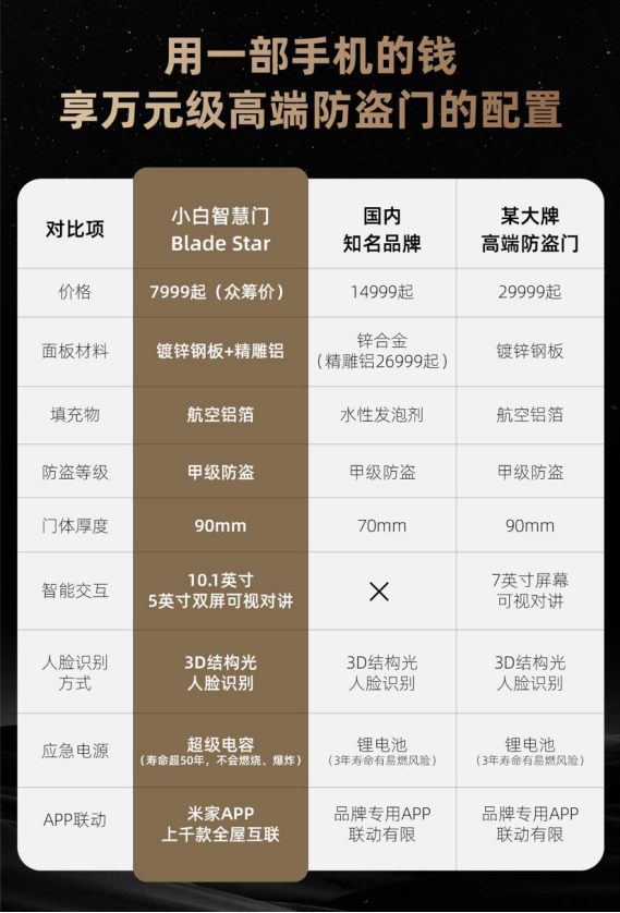 目前,预售的小白旗舰款智慧门BLADE STAR 仅需7999元,正在小米有品众筹上新。