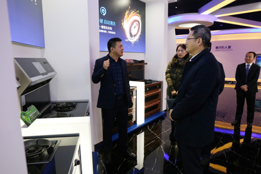 徐书记一行首先来到板川展厅参观,详细了解了板川的产品及品牌理念。徐书记更是亲身体验了板川安全集成灶新品“智厨”。便捷的语音控制,人性化的智能设计,得到了徐书记的赞赏!