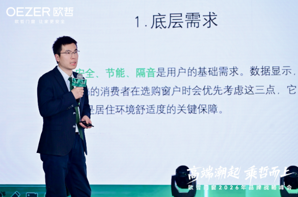 欧哲门窗总经理朱凯松在开幕致辞中回顾了品牌13年的高端化发展历程。他指出,随着消费升级与改善型住房需求增长,高端系统门窗已成为家居行业的重要赛道。欧哲将继续依托产品、品牌与服务三大核心引擎,推动行业高质量发展,助力中国高端门窗走向国际。