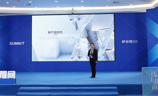 除了有如此多杰出的经销商,和强大的终端销售体系外,强大的产品研发与工艺创新能力,也是核心优势,毕竟企业的竞争归根结底是产品的竞争。直播现场,萨米特瓷砖产品总监彭婷雯女士带我们走进产品的新时代,在线体验核心新产品。