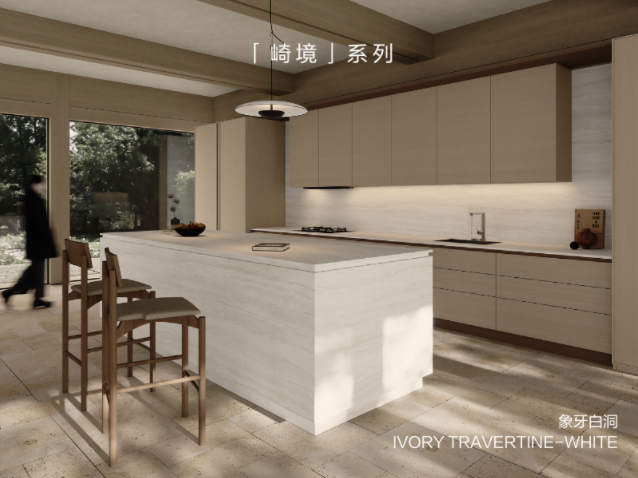 采风·崎境系列不仅是对自然美学的致敬,更是让每一块岩板都成为记录时光的载体,在人与自然的对话中,完成一场关于永恒与变迁的美学探索。让每一寸空间都成为可触摸的山水画卷,让每一次驻足都能感受天地造境时的匠心与诗意。