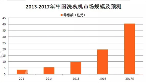 洗碗机已经成为中国家电行业增速最快的品类。目前,中国洗碗机市场表现亮眼,得益于宏观消费环境、产业内部结构升级、新兴品类市场爆发等多方面积极因素的集中释放。2017年洗碗机市场将继续以高增长的姿态前进,全年洗碗机零售额将有望超40亿。