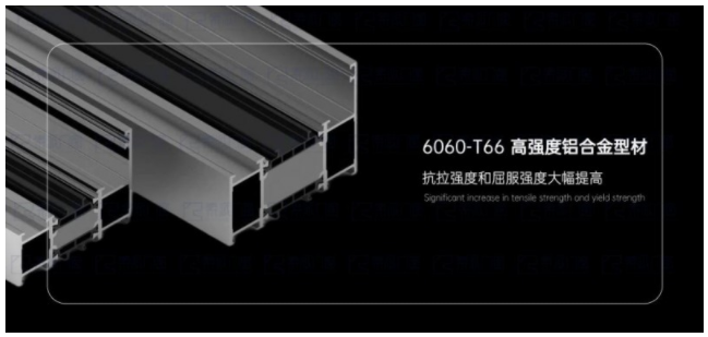 素派门窗采用高强度6060-T6原生铝型材,比市面常用的6063-T5型材在抗拉强度和屈服强度方面分别提高了29%和22.7%,极大地保障了门窗整体的安全性与抵抗风雨能力。