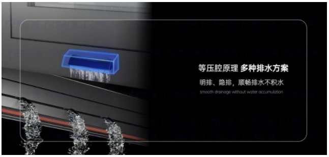 门窗室外腔若无法及时排水,雨水就容易倒灌入室内。素派门窗采用等压腔排水设计,多阶梯排水通道,高效排出室外侧雨水,防止雨水倒灌,不易积水,不易渗透,杜绝霉菌滋生,整窗洁净美观。