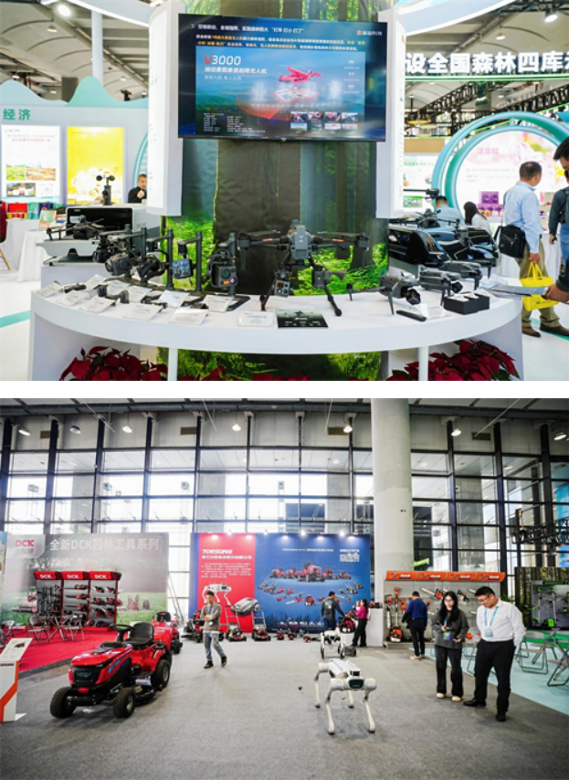 紧扣行业发展趋势,本届展会深度融合数智技术与绿色发展两大核心潮流,首次设立智慧林草主题馆、数智赋能应用馆、AI+高新技术馆三大特色展馆,集中展示一系列行业创新成果。其中,无人机低空巡护科技护林系统、AI桉树种植管理系统、森林资源信息管理平台等智能化解决方案集中亮相,高端数控木工机械精准演示生产全流程;索菲亚、爱阁工房等企业带来“从设计到交付的一站式定制家居AI解决方案”,让观众直观感受“所想即所得”的未来家居体验。绿色板材馆内,竹基新材料、无醛胶合板、环保胶黏剂等低碳产品琳琅满目,智能数控加工、林业废弃物循环利用等技术成果备受关注,既体现了林木业的环保担当,也为采购商提供了可持续的合作选择。