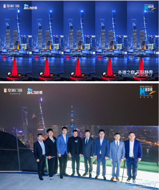 与此同时,被誉为中国第一高楼的巨型高层地标式摩天大楼——上海中心大厦的LED大屏同步点亮皇派门窗品牌广告,夜幕中“怕噪音 用皇派”的品牌广告语照亮外滩夜空,以极具震撼力的地标传播形式,爆发品牌势能,不仅彰显了皇派门窗作为行业引领性品牌的实力,更传递出其推动中国好门窗惠及更多家庭、让世界见证中国智造力量的坚定决心!