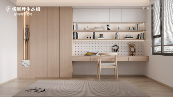 将军牌生态板,秉持以消费者需求为导向的理念,融合前沿设计与潮流趋势,将品位贯穿卧室至整个家居空间,创造“家·有将军之材”的品质生活。每一块将军牌生态板都是对美好生活的承诺,是时光的见证,为家居空间注入独特的个性美。通过不同的花色设计,实现视觉上的和谐统一,打造回归自然、富有艺术格调的居室环境。