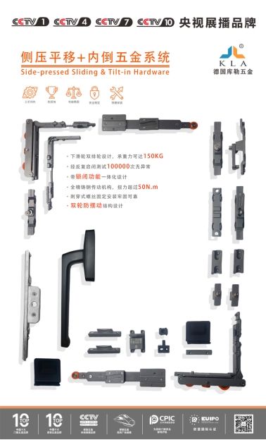 库勒五金携“中国十大门窗五金品牌”“中国家装五金品牌”等权威认证,始终深耕门窗系统五金解决方案的研发与创新领域。旗下侧压平移+内倒五金系统作为明星产品,凭借多项硬核技术成为行业标杆:下滑轮采用双排轮设计,承载量可达150KG,经10万次反复启闭测试仍稳定运行;一体化带锁闭功能搭配全精铸钢传动机构,锁闭扭力超50N·m,稳定性远超行业标准;刺式螺丝固定保障安装牢固,双轮防摆动结构彻底解决门窗滑动晃动痛点。依托深厚技术沉淀、严苛品质把控及权威荣誉加持,库勒五金已成为众多头部门窗品牌的信赖之选。