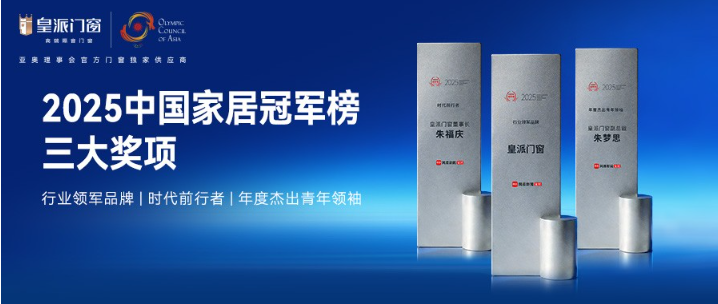 新岁序开,“2025中国家居冠军榜”盛大发布,皇派门窗凭借强势的品牌实力与行业领袖影响力,一举斩获三大重磅奖项——皇派门窗荣膺2025中国家居冠军榜“行业领军品牌”称号,皇派门窗董事长朱福庆、副总裁朱梦思分别获得2025中国家居冠军榜“时代前行者”、“年度杰出青年领袖”。作为门窗领域的标杆代表,皇派门窗在众多家居行业品牌中强势彰显出瞩目的冠军锋芒。