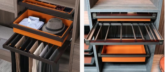 五金就像柜子的关节,选对了,用十年都顺畅无声;选错了,每天都要被异响、下垂困扰。所有五金,一定要选带阻尼的。开关柜门时能缓冲,没有撞击声,也能防止夹手,家里有小孩的,这点尤其重要。选品牌五金,耐用又省心。
