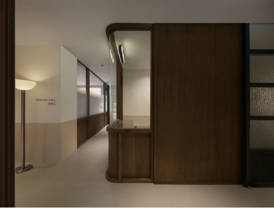 Medical Area: Semi-transparent glass doors allow diffused light to soften the clinical atmosphere, while wooden wainscoting paired with soft wall lamps strikes a balance between professionalism and warmth.