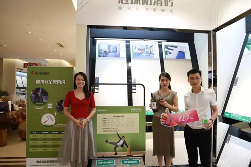 由国家室内车内环境及环保产品质量监督检验中心、中国室内装饰协会材料委、华夏陶瓷网更家居联合举办的2019健康安全家居建材年会暨首届功能瓷砖发展趋势论坛,在佛山皇冠假日酒店举行。冠珠陶瓷展示的防滑砖受到媒体及广大消费者的青睐,通过亲身测试,赢得广泛好评。
