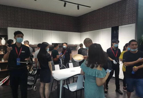 疫情影响,也不减人们对于广州建博会的热情;大牌齐聚,也阻挡不了卡利亚散发的光芒。直击展厅现场,在展位门口就可以看到络绎不绝的人头攒动,有的俯身仔细端详,仿佛想望穿这不锈钢台面,一探里面的究竟;有的仰头伸手触碰,摆弄上柜的升降调味篮;有的驻足跟前欣赏产品细节,研究讨论。思想万千,状态各异,但都沉浸在全钢的独特魅力中。