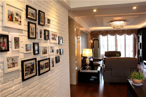 石膏墙上镶嵌着各式相框,别有一番雅致。