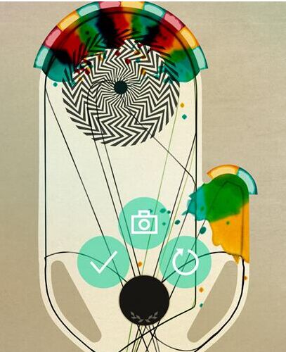 看懂了吗?这个就是你用玩弹珠台形式留下的色块和线条组成的艺术作品。通过每一张“画”的不同,就能直接分辨出你这一关拿到的是高分还是低分,妙就妙在,这游戏并没有任何分数。