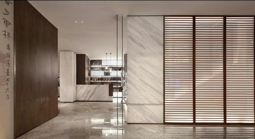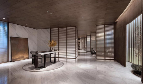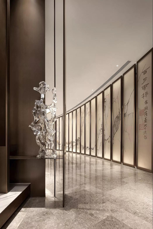 走廊顶部线性照明,更是指引着到访的人向前走去。