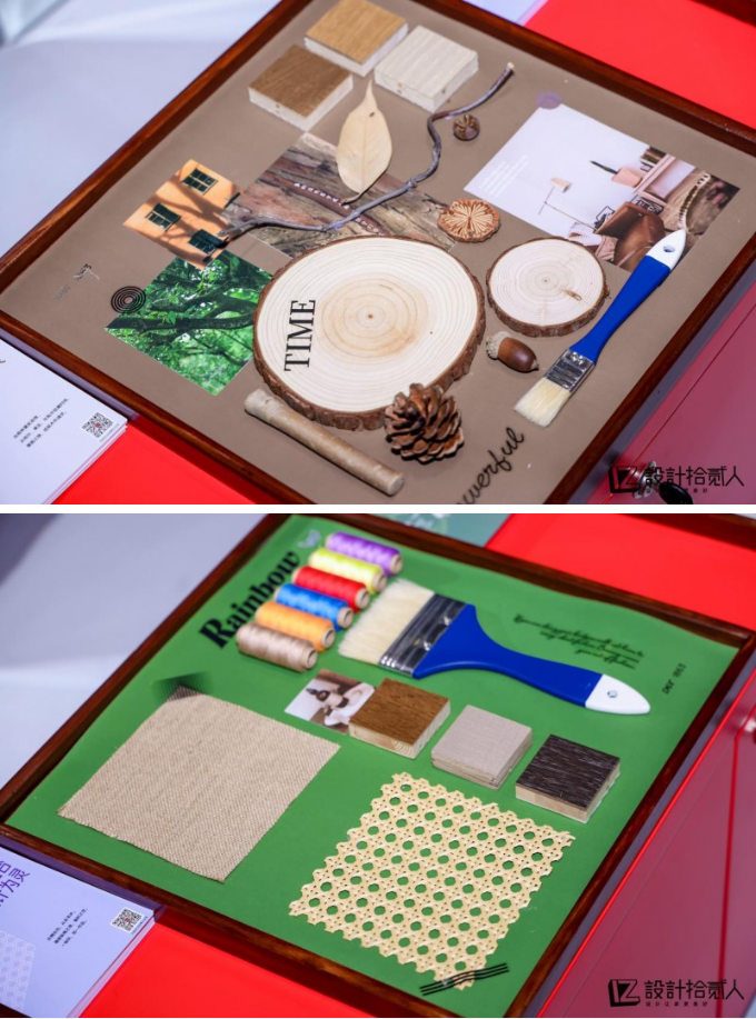 链接12个空间廊道的放置品牌展台,以“器物融合,设计为灵”为主题分别陈列“木之本初”、“色之灵魂”、“纹之经纬”、“匠之形态”小型材料概念展,让材质美学与创意灵魂成为具像化的自然叙事,带领观众触摸感知到每一块Der·1863地板的菁华之处。