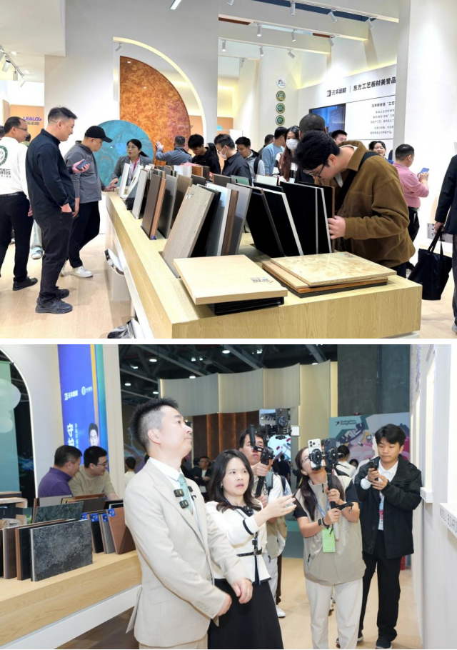展会期间,元丰新材的展位凭借独特的“望、闻、触、用”沉浸式体验设计,始终保持着高涨的人气。这里没有生硬的技术参数堆砌,而是通过可感知的场景,让每一位到访者与板材展开深度对话。