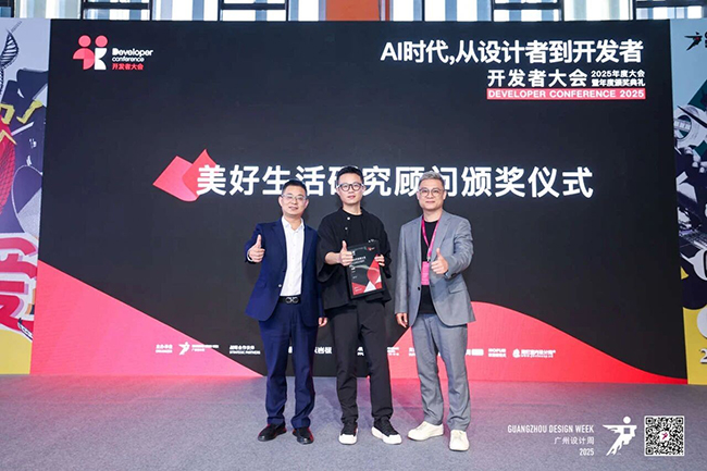 2025年,开发者大会设立"美好生活研究院",面向全国征集设计作品。经过严格评审,在2025年度盛典上隆重揭晓了"美好生活研究顾问"和"美好生活研究员"榜单。行十设计创始人张威凭借在非遗智造领域的卓越贡献,荣获"美好生活研究顾问"这一重要荣誉。同时,大会从3870位申报者中严格评选出100位"美好生活研究员",这些优秀设计师来自全国各地,在非遗文化赋能和AI设计开发领域展现出卓越实力。