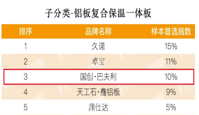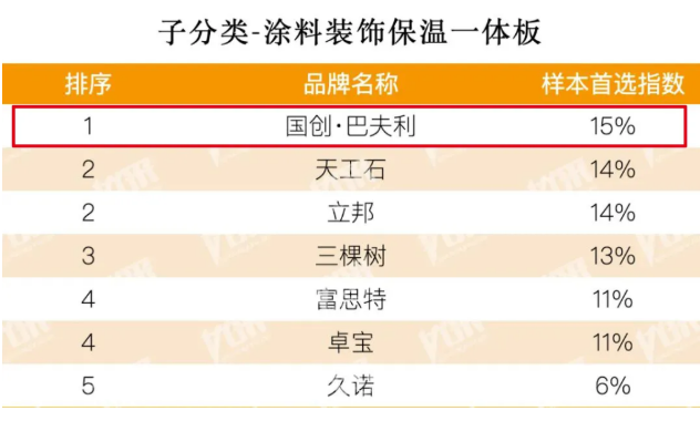 · 国创·巴夫利荣登涂料装饰保温一体板类榜首,连续五年排名第一,进一步巩固其在涂料装饰保温一体板材料与施工服务领域的双领军地位;